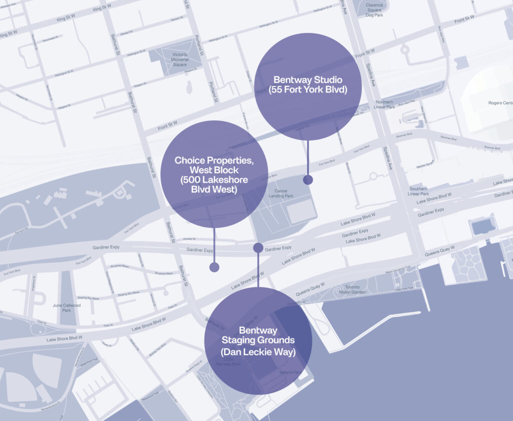 - Universal and all-gender washrooms are available on site at The Bentway Studio before the tour.