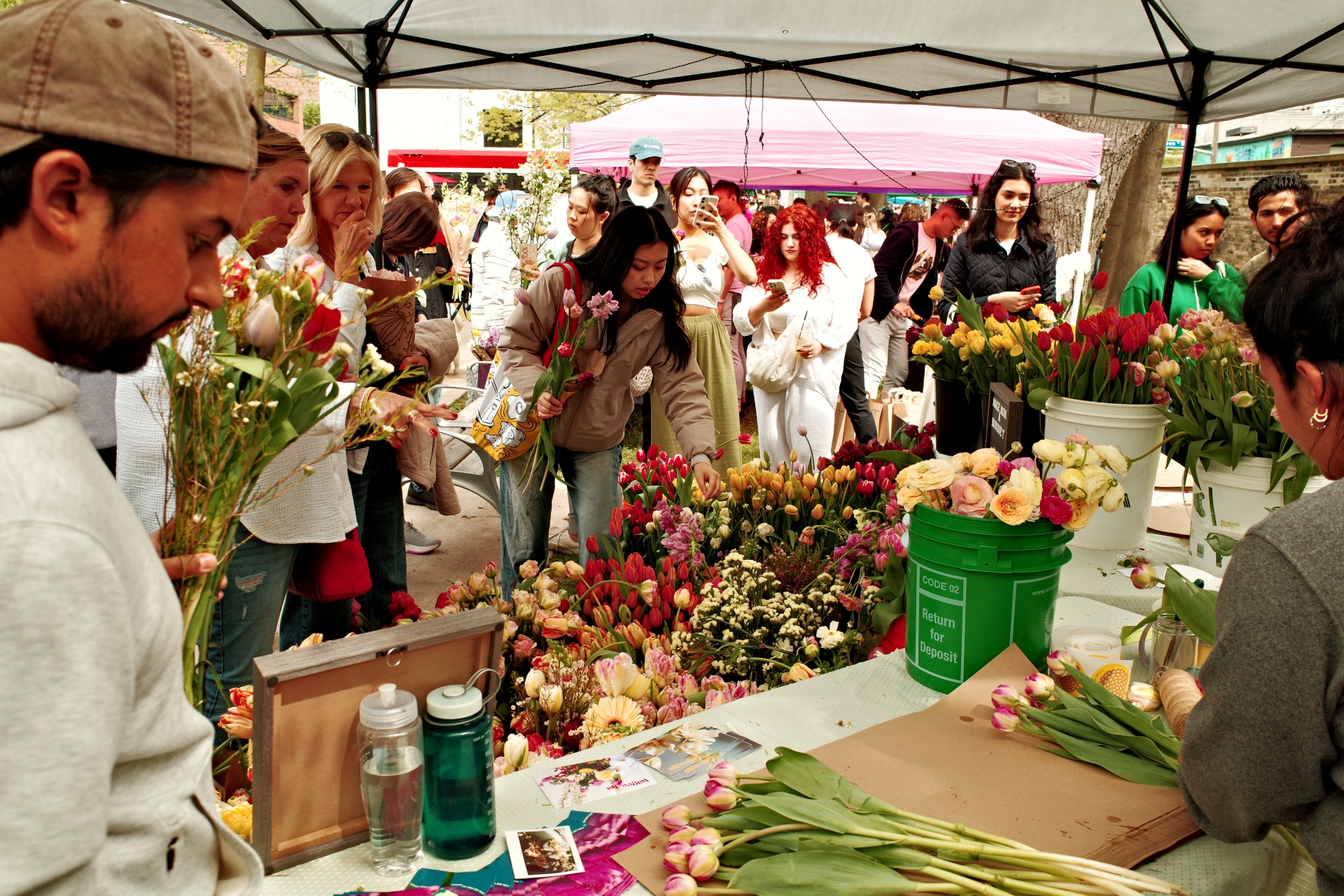Echoing the rich visual language of Iranian textiles and rug-making traditions, this outdoor event transforms the site into a sprawling flower market. Stalls of seasonal flowers and foliage fill the space, inviting visitors to wander, linger, and take part in the sensory experience. Bouquets draw inspiration from the mural’s palette—deep reds, soft pinks, and intricate botanical forms—offering a chance to carry a piece of the artwork into everyday life.