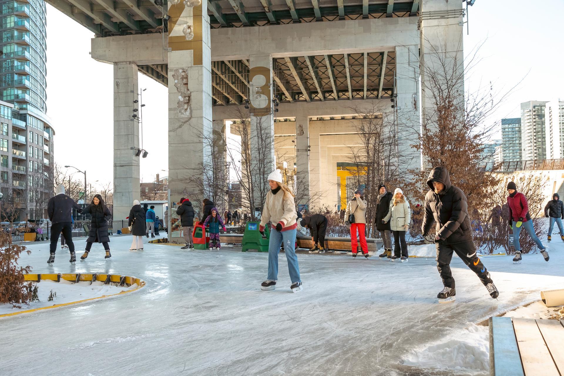Enjoy free skate rentals at The Bentway skate trail every Thursday evening from January 8 – February 12, thanks to the generous support of Billy Bishop Toronto City Airport.
